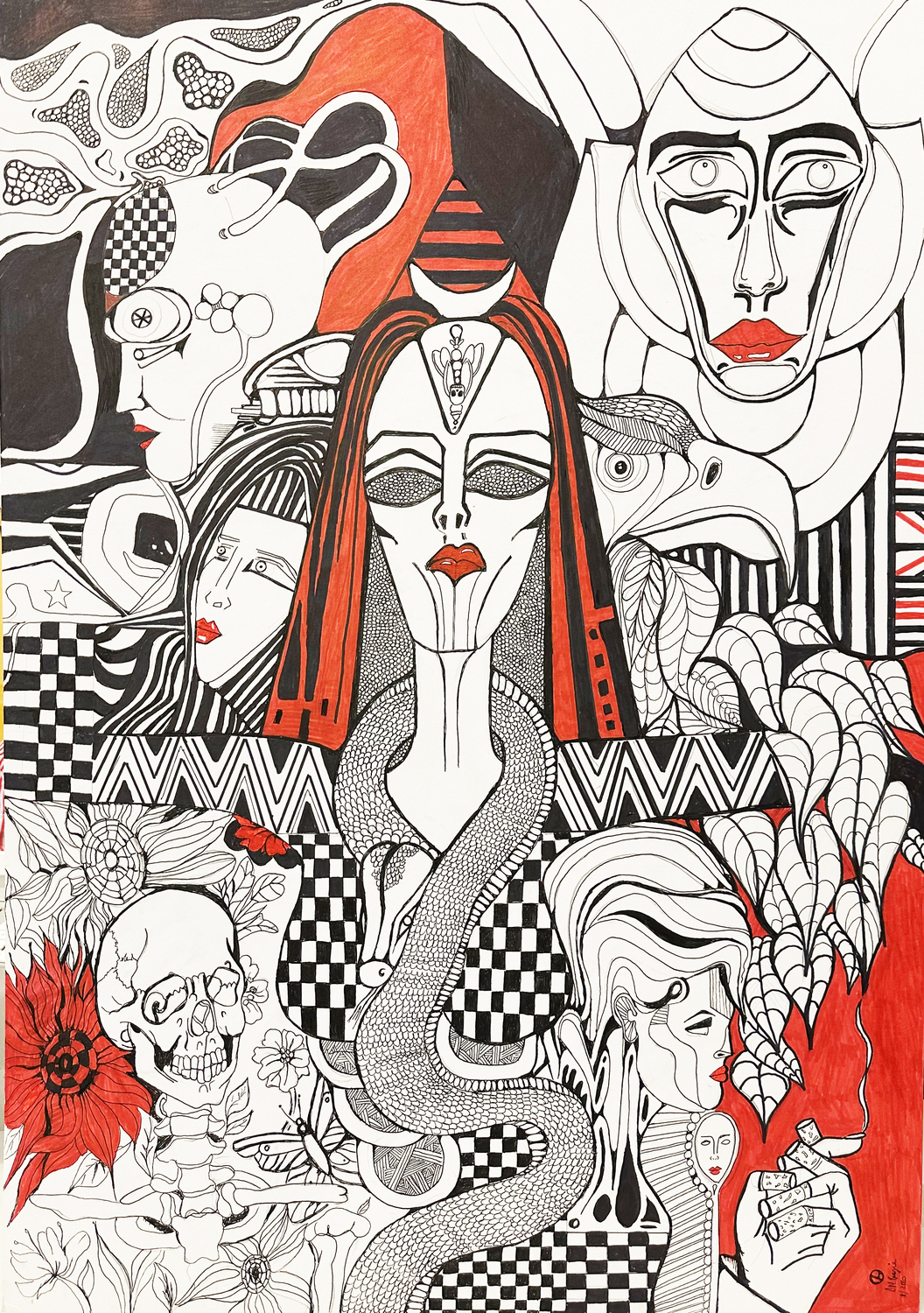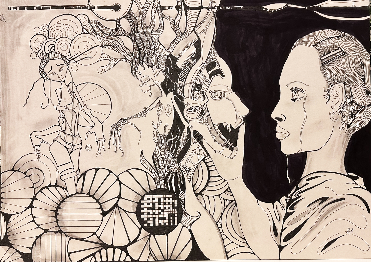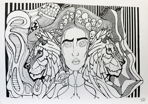 Following on from glimpses of life, with this page and its contents I’m showing how, through a massive brain haemorrhage, I am still producing art works, even after my stroke. I’m relieved to say that it has not taken away my life completely. I have a lot of pain daily but it doesn't stop my detailed art works of many sizes to come to fruition. My love and determination to never stop my creativity. I love my time alone when doing my works and I have a partner now who helps me to be brave enough to go one step after another, gaining strength through years of pain and not giving up on living has been one of my main reasons. I’m now also a grandmother to 3 beautiful boys, who obviously I adore, so when life hits me hard I just push on through and start creating images and thoughts of a better life. The pieces of art that contain colour within them are representative of me feeling good on days and bad on days. so I’m really looking forward to producing more of my coping strategies throughout my time here to represent my struggle through my left sided stroke as I’m amazed and thankful for my ability to be. I believe getting better and better through my life with beauty now in the forefront, but like many other people we all have those dark moments and obviously my work is an acquired taste. I hope it brings some sort of satisfaction to the viewer and would love for feedback to become a positive way of maybe helping others.